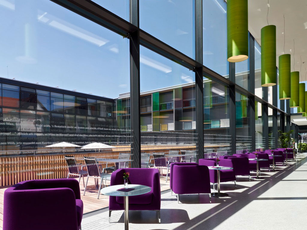 Die bauseitig erstellte Pfosten-Riegel-Stahlkonstruktion wurde von uns mit großflächigen Glaselementen verglast und mittels Klemm- und Deckleisten befestigt. Diese Bauweise ermöglicht beeindruckende Spannweiten und eine lichtdurchflutete Architektur. Die moderne Glasfassade verleiht dem Café des Seniorenheims einen zeitgemäßen, stilvollen Charakter und fügt sich dennoch harmonisch in die bestehende Gebäudestruktur ein.