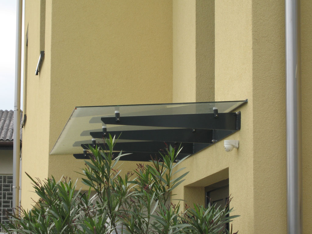 Diese Vordachverglasung wurde als zuverlässiger Schutz vor Wind und Wetter vor dem Hauseingang der Familie G installiert. So kann die Haustüre komfortabel im Trockenen aufgeschlossen und Gäste geschützt empfangen werden. Darüber hinaus bietet das Vordach zusätzlichen Schutz für den Postkasten, die Klingel, Dekorationselemente und die Hauswand. Die Schwertkonstruktion aus Stahl überzeugt nicht nur durch ihre Stabilität, sondern auch durch ihre individuelle Gestaltungsfreiheit. Die Farbe kann passend zur Haustüre oder zur Fassade gewählt werden – wie bei diesem Objekt, bei dem sie harmonisch in das Gesamtbild des Eingangsbereichs integriert wurde.